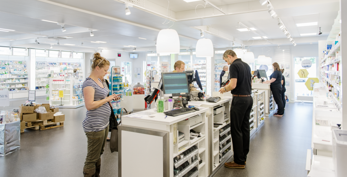 I hjertet af apoteket er den store lagerrobot placeret. Robotten tilsikrer en lynhurtig produkthåndtering, med meget lidt ventetid som følge heraf.
